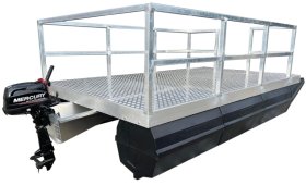 We have made boats used as BBQ Pontoon Boats, Passanger Transfer, Work Barges, Work Platforms, Docks, Moving Craft, Mooring Lifts, Transport Barges, Oyster Barge, Croc Boat, Cattle Transport, ATV Transport, Tiny house boats and Fishing!